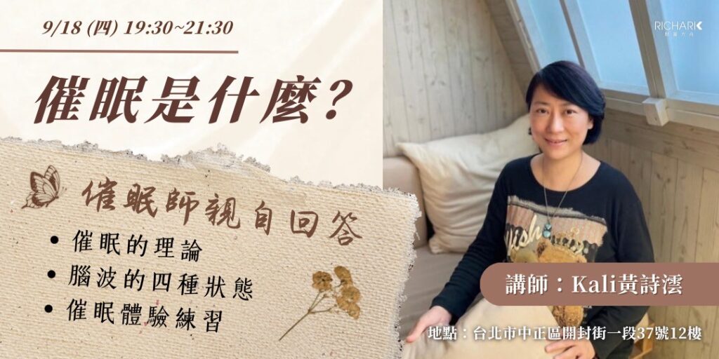 【實體課程】9/18 催眠是什麼?催眠師親自回答關於「催眠」的N個為什麼? Posted on 2025 年 8 月 27 日2025 年 9 月 3 日 by Richark 命運可以被改寫,你就是鑰匙。催眠不是魔法,是科學與...