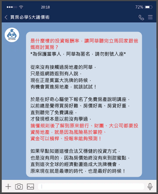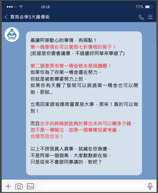 報名完會將你拉入line私密包廂,等候開課提前進入包廂還可以搶先使用房產教學機器人獲得更多密技。