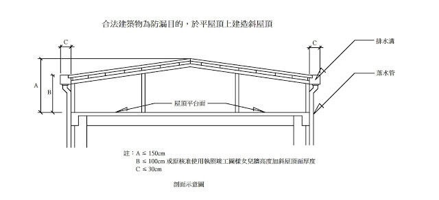 有的,但只限於改善老舊屋頂漏水的用途,政府因考量屋頂老舊造增漏水的問題,有開放頂樓加蓋斜屋頂的規定,只要依據政府的規定加蓋就算合法,以下是台北市跟新北市的規定。