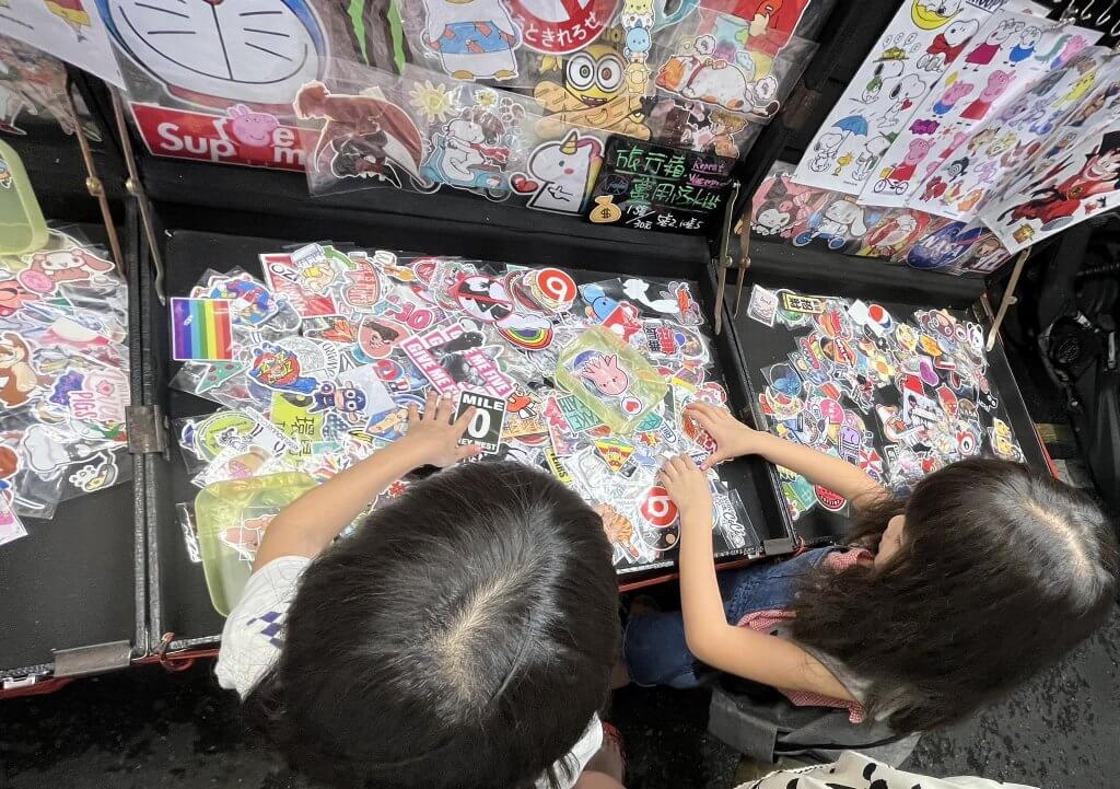 就在我們經過賣貼紙的攤位時